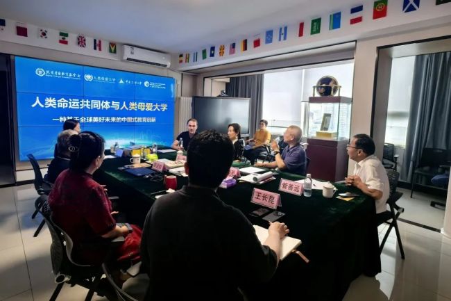7月11日北京电 由联合国经济及社会理事会特别咨商地位机构-北京青爱教育基金会与中国传媒大学人类命运共同体研究院联合举办的“人类命运共同体与人类母爱大学:一种基于全球美好未来的中国式教育创新”国际交流会在北京举行。中国经济社会理事会理事、北京青爱教育基金会理事长张银俊,中国传媒大学人类命运共同体研究院副院长王四新,联合国教科文组织驻华代表处教育官员于滨,北京青爱教育基金会名誉理事长、山东大学跨文明对话研究中心副主任高述群,中国农垦集团原副总经理、长期驻非洲工作代表管善远,北京青爱教育基金会理事、长期从事国际贸易代表金丽洁,土耳其青年代表雅武兹·图尔古特·乌鲁索伊,北京青爱教育基金会国际部部长王长昆等出席。交流会由高述群主持。7月9日,高述群代表张银俊理事长走访中国传媒大学人类命运共同体研究院,院长李怀亮、副院长王四新等热情接待。本次会议是应北京青爱教育基金会邀请共同举办的一次国际性交流会议。